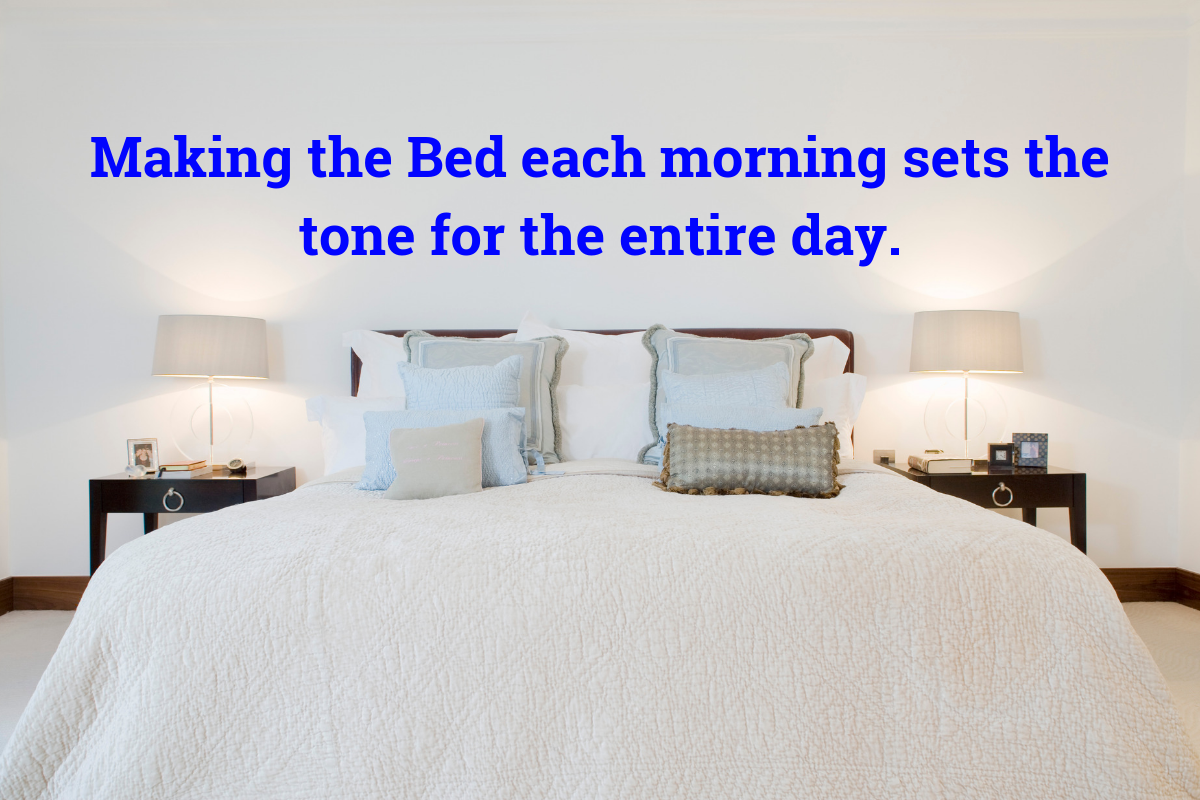 Try it. Start a new habit. Make the bed each morning. See how this new improve “you” will make you feel each day. Lastly, check out this commencement speech by Admiral William H. McRaven for the University of Texas at Austin. A very inspiring speech.  https://www.youtube.com/watch?v=pxBQLFLei70