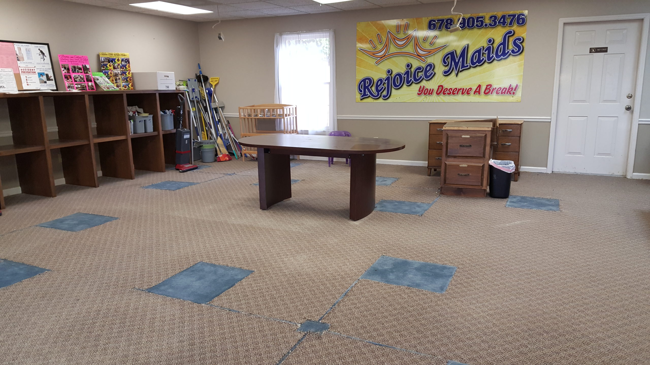 It was a long 2 weeks here at Rejoice Maids new location. As of today we are still fixing and improving our new office. Lots of things to do. Our parking lot needs TLC, the building façade needs power wash and fresh new paint, yard needs landscaping, interior need paint throughout. We have to change our carpet, and floor tiles have to be re-wax.